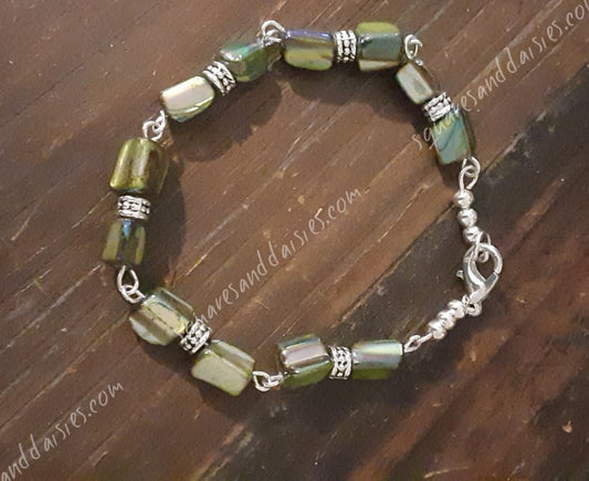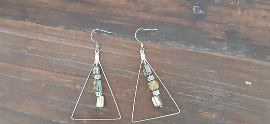 Green Mother Of Pearl Gemstone Triangle Hoop Earrings