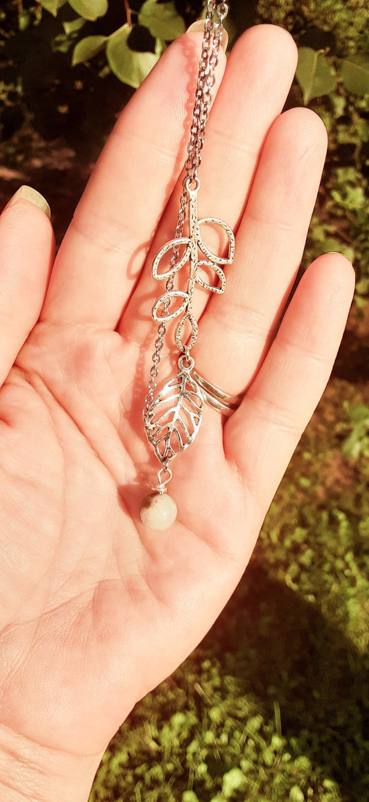Autumn Leaves Silver Necklace with Amazonite Stone