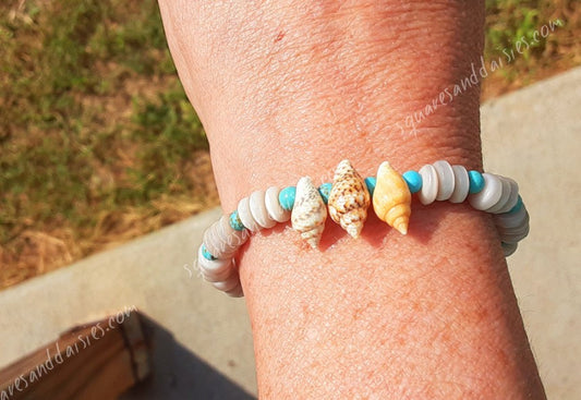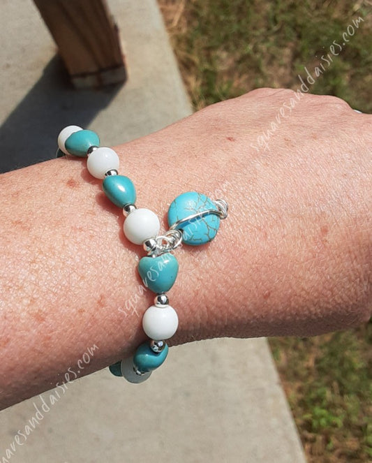 Magnesite Stone and Cat's Eye Beaded Stretch Bracelet, Turquoise Blue