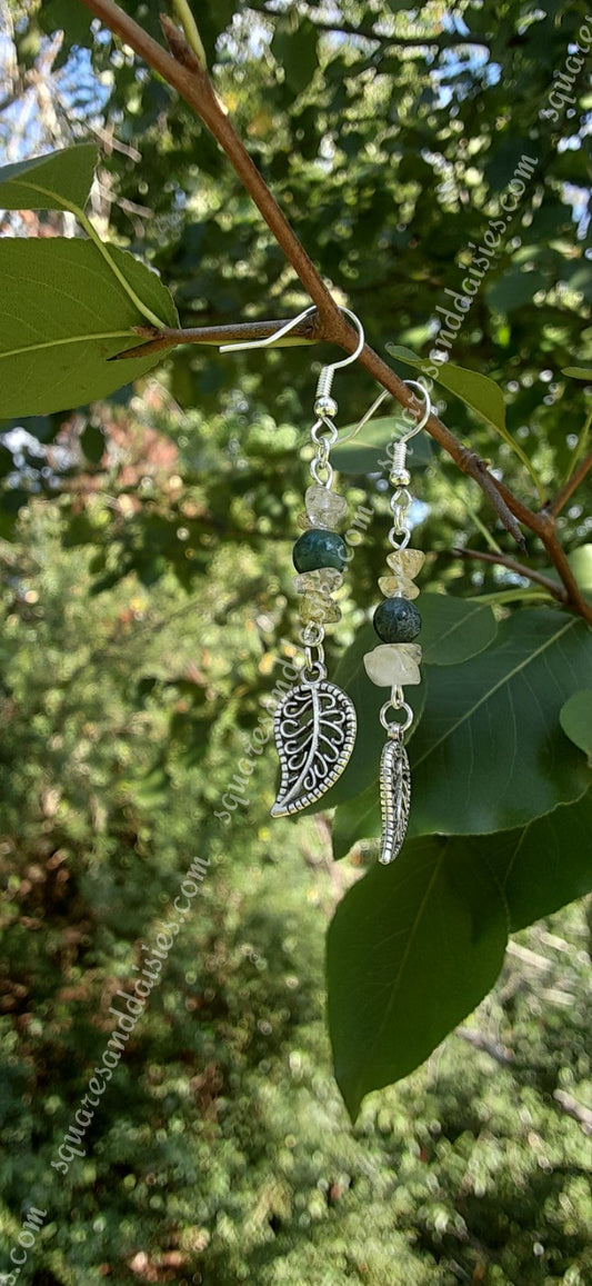 Autumn Leaves Silver Earrings with Natural Indian Agate Gemstone and Golden Quartz
